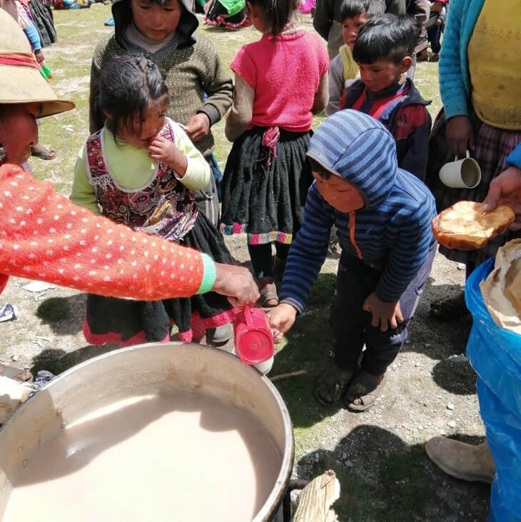 In these difficult times, it’s essential to honor beloved traditions and to celebrate as a community. The Q’ero people have suffered many hardships this past year that weigh heavy on their hearts and minds. Uniting in celebration with holiday hot chocolate and sweet bread brought warmth and smiles to the faces of the Q’ero children and elders alike.